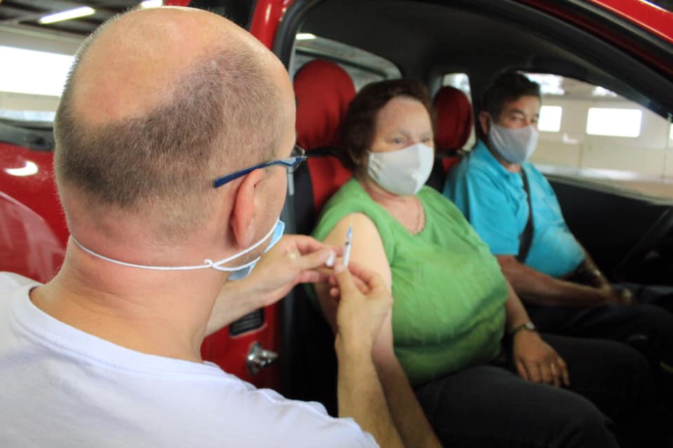 Em São Marcos, aproximadamente 400 idosos de 81 anos ou mais receberam a 1ª dose da vacina contra a Covid-19 nesta quinta. O número total de doses aplicadas (1ª e 2º), incluindo profissionais de saúde, é de cerca de 1.200.