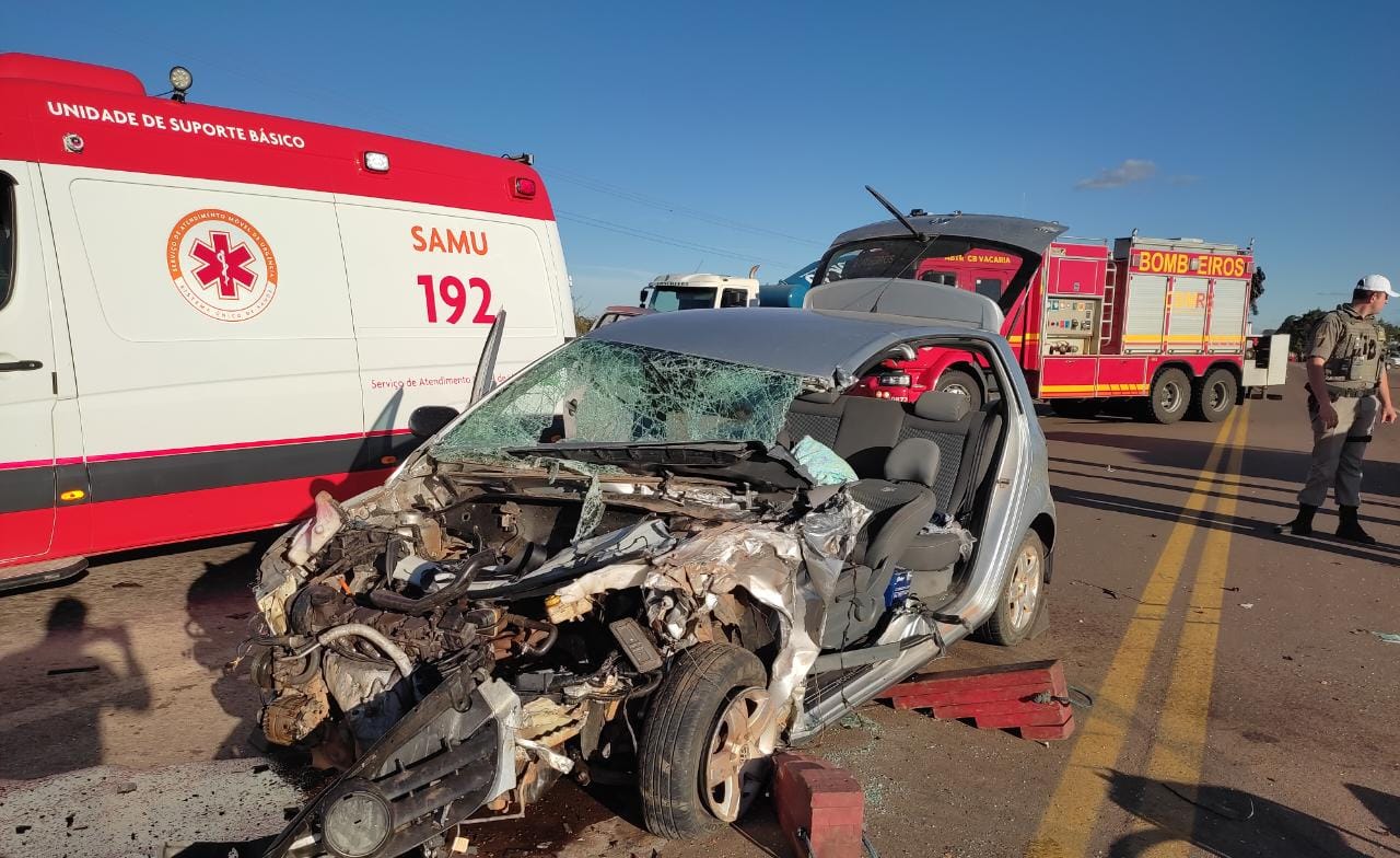Acidente entre carro e caminhão deixa três feridos em Vacaria