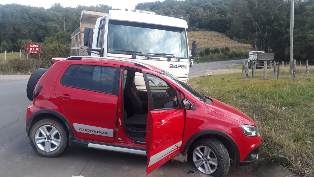 Por volta das 16h desta quinta-feira (7) as equipes do Samu e dos Bombeiros foram acionados para atender um acidente de trânsito na BR 116. A colisão ocorreu na altura do km 108 da BR 116, na entrada da Linha Rosita, e envolveu um veículo de passeio e um caminhão caçamba, ambos com placas de Caxias do Sul.