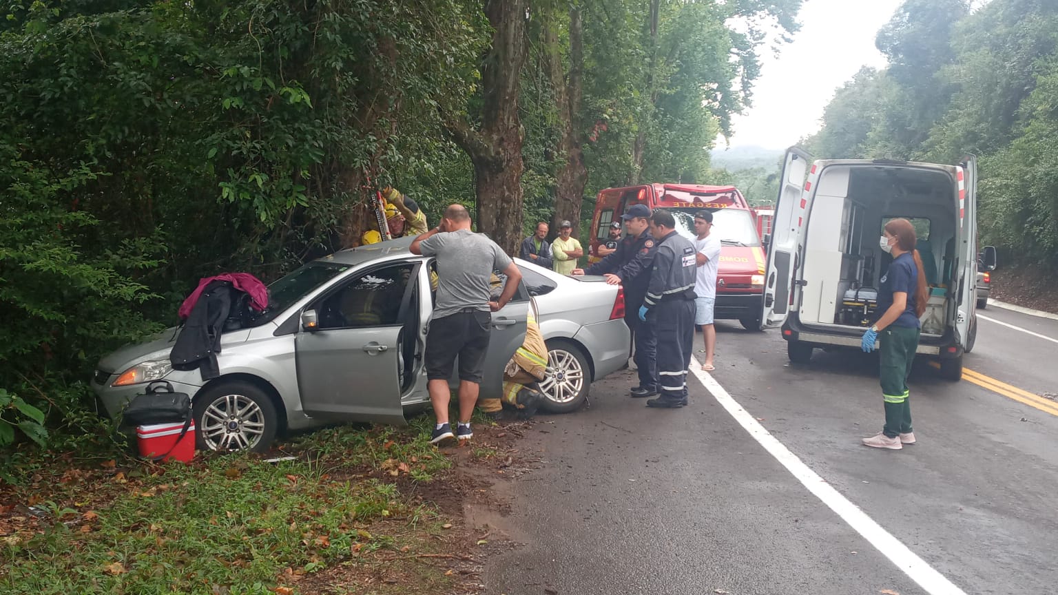 Um veiculo Ford/Focus que seguia no sentido Caxias – São Marcos acabou saindo da pista e colidindo lateralmente contra uma árvore, nas imediações do corte, entre São Marcos e Pedras Brancas.