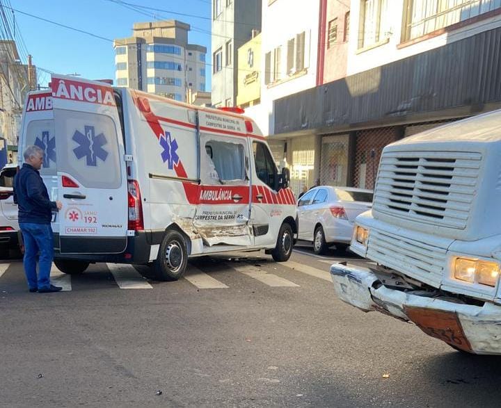 Um acidente envolvendo uma ambulância de Campestre da Serra e um caminhão foi registrado no fim da tarde desta segunda-feira (28), no cruzamento entre as ruas Dr. Flores e Pinheiro Machado, no centro de Vacaria.