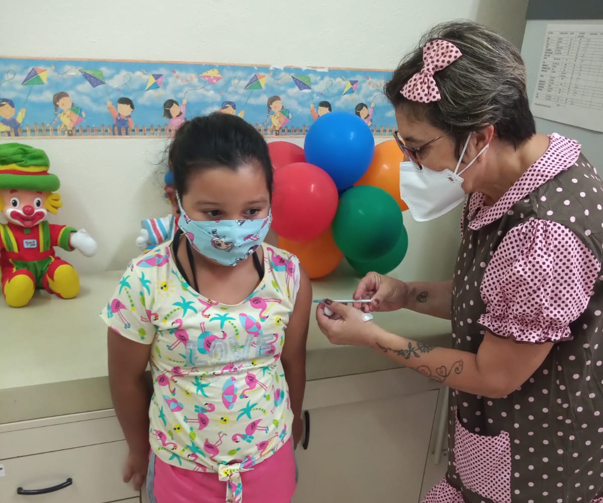 A primeira imunizada no município é a pequena Ana Alyce da Silva; de 6 anos, a menina sofre de asma crônica. A estimativa é que cerca de 1600 crianças desta faixa etária (com e sem comorbidades) sejam vacinas no município.
