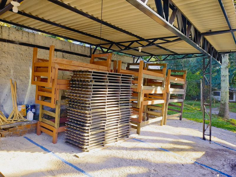 Para a confecção das camas, são utilizados materiais como madeira, parafusos, pregos, lixadeiras e plainadeiras – doados por parceiros da região que decidiram apoiar a iniciativa. Os apenados também confeccionaram 140 rodos, sendo que 100 já foram distribuídos para as cidades de Frederico Westphalen, Muçum e Roca Sales.