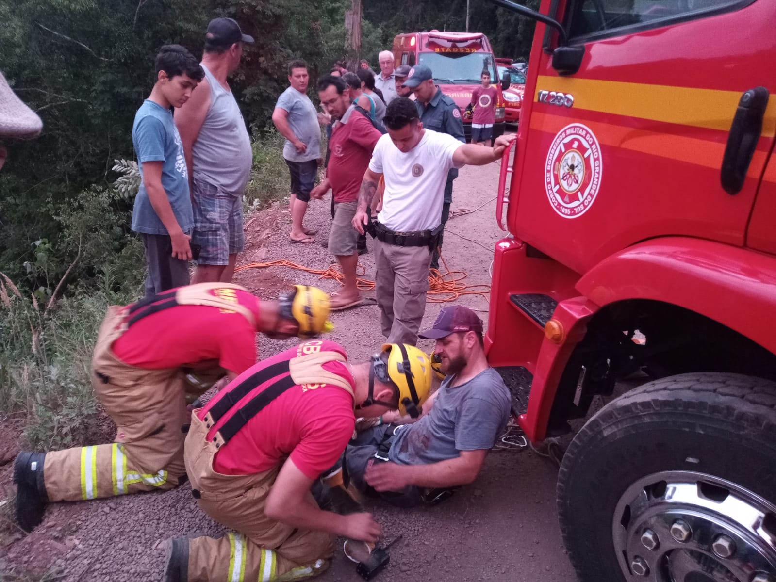 A vitima, um homem de 36 anos, subiu a ribanceira com a ajuda dos bombeiros e relatou que seguia no sentido Flores da Cunha x São Marcos quando um dos pneus da frente teria estourado.