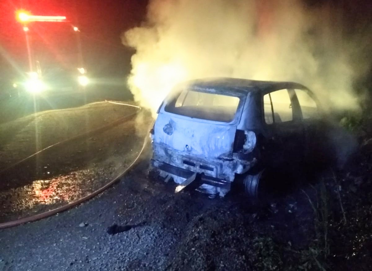 De acordo com o registro feito pela guarnição, quando a equipe chegou ao local o veículo já estava totalmente queimado, com perda total, a guarnição apagou o incêndio e fez o rescaldo.