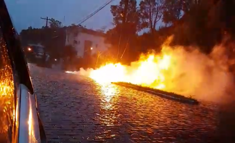 No fim da tarde desta quinta-feira (16) uma árvore caiu sobre fios de alta tensão na Rua Pe. Feijó, próximo a Associação dos Motoristas. A queda provocou o rompimento dos fios e por consequência um curto circuito, deixando alguns bairros sem luz.