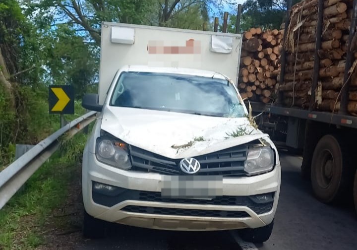 Apesar dos danos no capô, vidro para-brisa e espelho retrovisor esquerdo, o condutor da camionete Amarok não sofreu ferimentos.