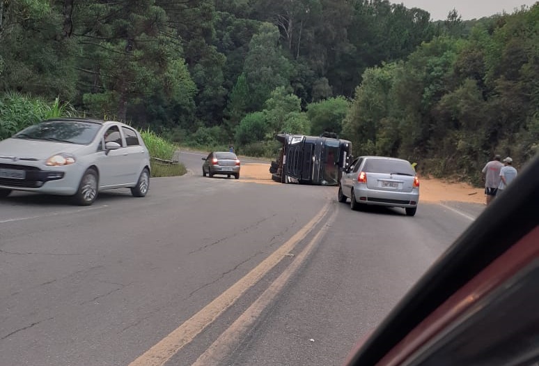 Por volta das 6h40 desta quinta-feira (19) um caminhão carregado de milho tombou no km 120 da BR 116, próximo a Ponte do Rio Redondo em Pedras Brancas. Conforme registro do Corpo de Bombeiros, que esteve no local e com auxílio do Samu ajudou a atender a ocorrência, o condutor estava sozinho no veículo e não sofreu ferimentos graves.