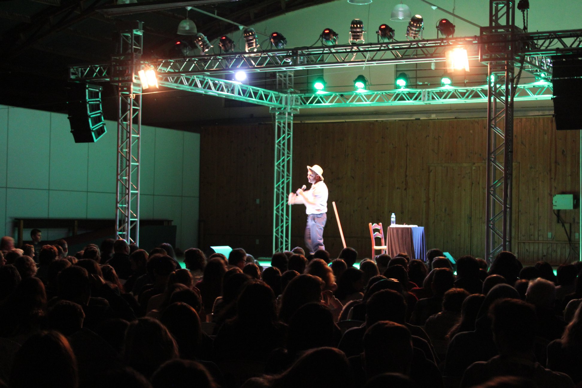 Antes do espetáculo humorístico houve sorteio de Dia das Mães da CDL O Badin é um colono, atrapalhado e que tem como missão aqui na terra levar alegria as pessoas.