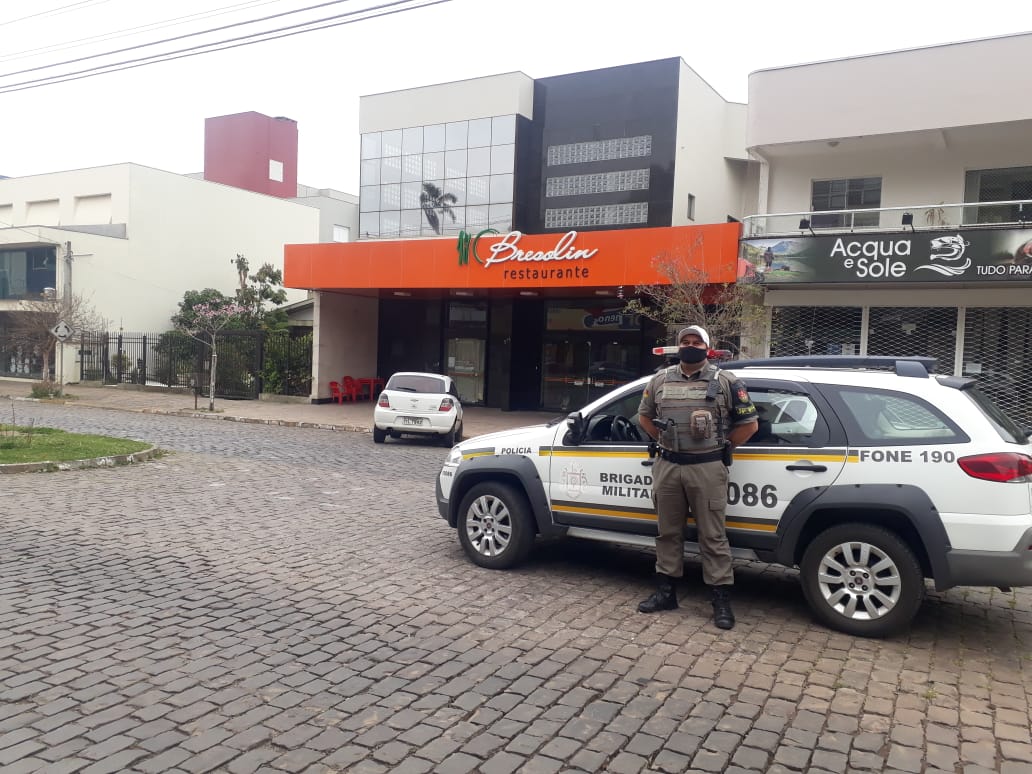 A Brigada Militar realizou patrulhamento preventivo ostensivo, com ação de visibilidade nas proximidades dos estabelecimentos comerciais, visando coibir furtos/roubos e drogadição, bem como identificar possíveis suspeitos de prática destes crimes, propiciando maior segurança na área comercial das cidades de nossa área de ação.