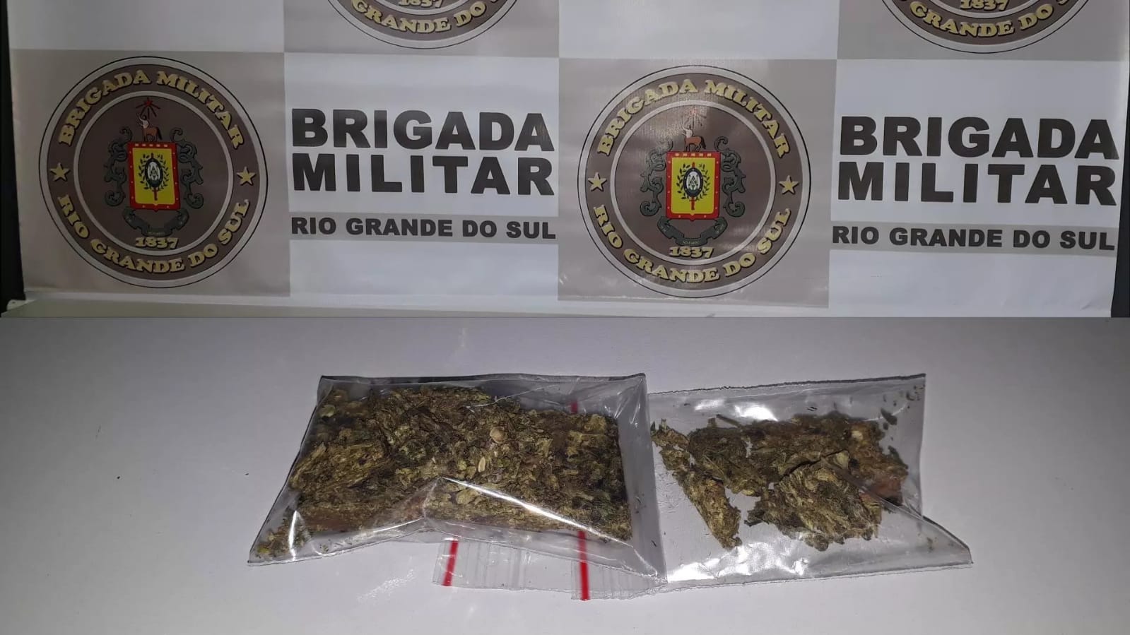 Policiais do pelotão de São Marcos registraram ocorrência por posse de entorpecentes Conforme boletim policial, a Brigada Militar realizava patrulhamento de rotina pela Rua São Marcos, bairro Industrial, quando por volta das 22h a guarnição abordou um veículo VW/Gol com dois indivíduos no interior, um de 29 e outro de 22 anos.