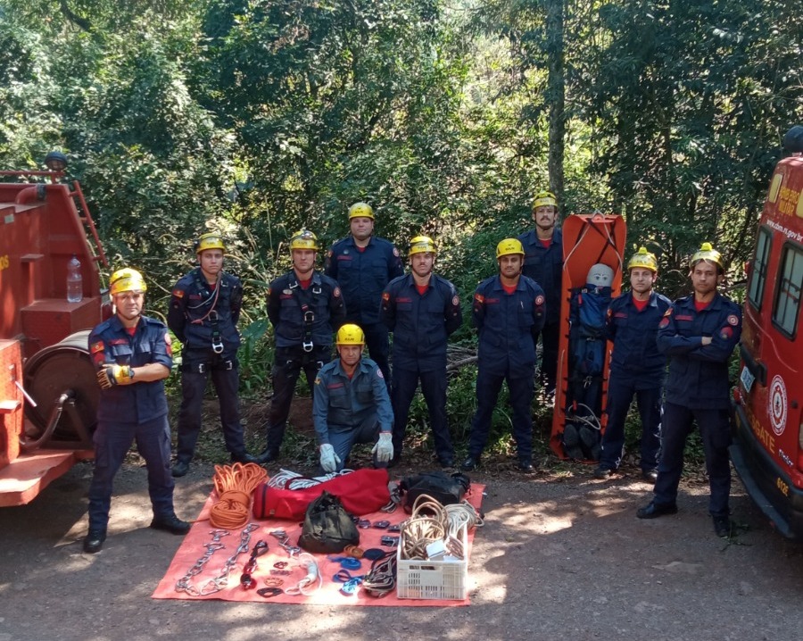 A simulação, realizada as margens da estrada 500, em Santo Henrique, envolveu a retirada de uma vítima em uma ribanceira com aproximadamente 30 metros de altura.