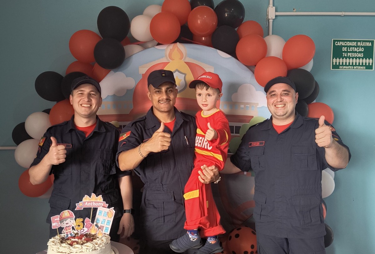 Na tarde deste domingo, 8 de setembro, uma celebração especial encheu o coração de um jovem admirador dos bombeiros em São Marcos. O pequeno Anthony, que completou 5 anos, teve o desejo de contar com a presença dos heróis que tanto admira em sua festa de aniversário, e o Corpo de Bombeiros Militar não deixou o sonho passar em branco.