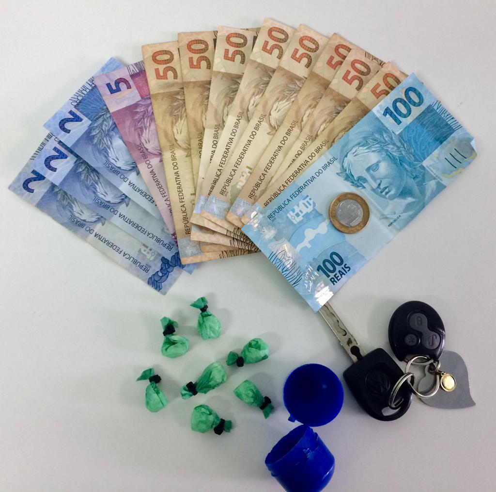 Foi efetuada abordagem do indivíduo e em busca veicular foram encontradas 7 buchas de substância semelhante a cocaína e R$ 532 em dinheiro. Diante dos fatos o indivíduo foi dada voz de risão e o homem foi conduzindo à delegacia de polícia para ser lavrado o flagrante.