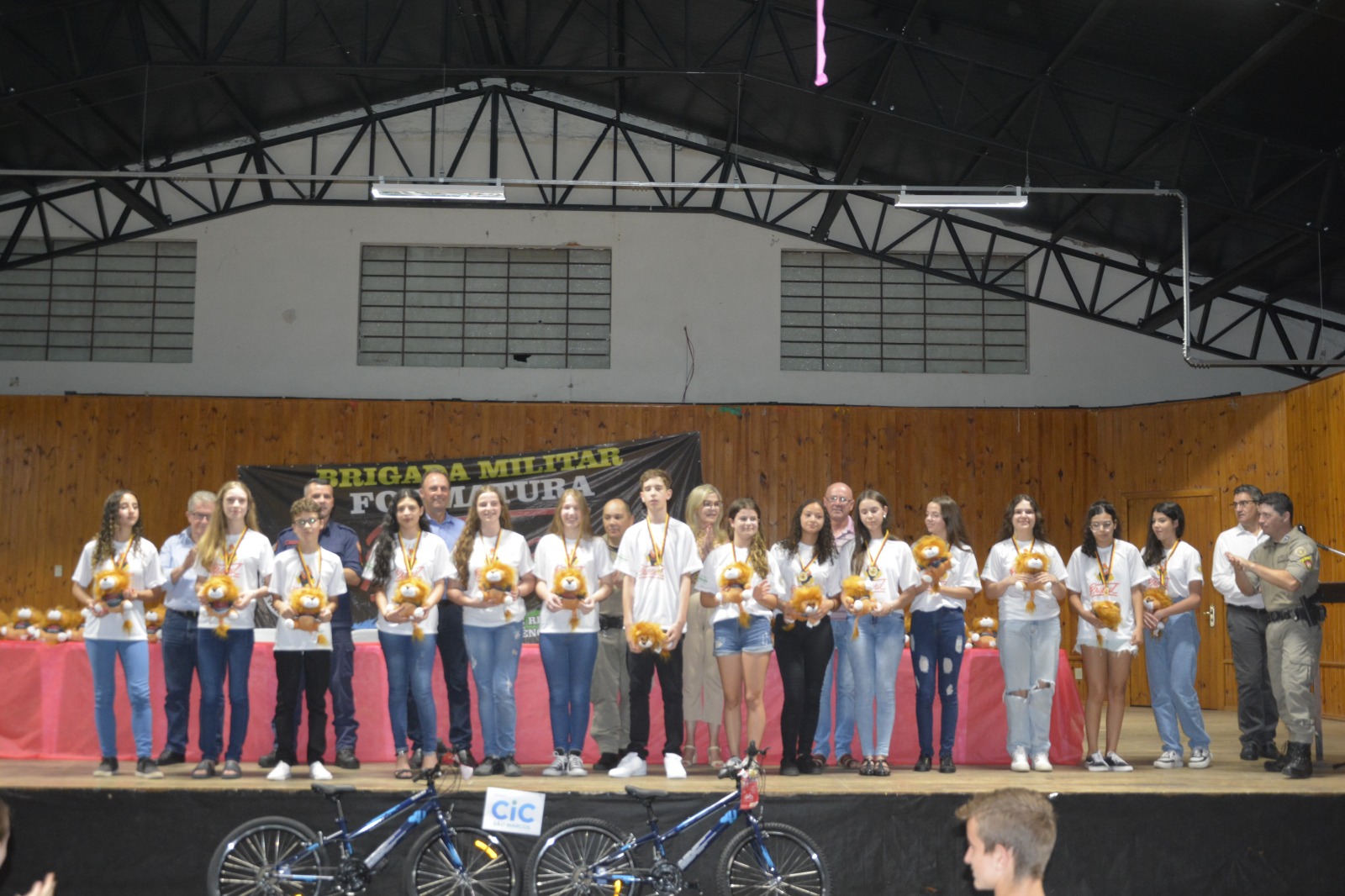 A Brigada Militar realizou, nesta segunda-feira (18), a formatura de 233 alunos que concluíram com sucesso o Programa Educacional de Resistência às Drogas e à Violência (Proerd) no município de São Marcos. O programa foi ministrado para os estudantes do 7° ano das redes municipal e estadual de ensino, abrangendo 14 turmas.