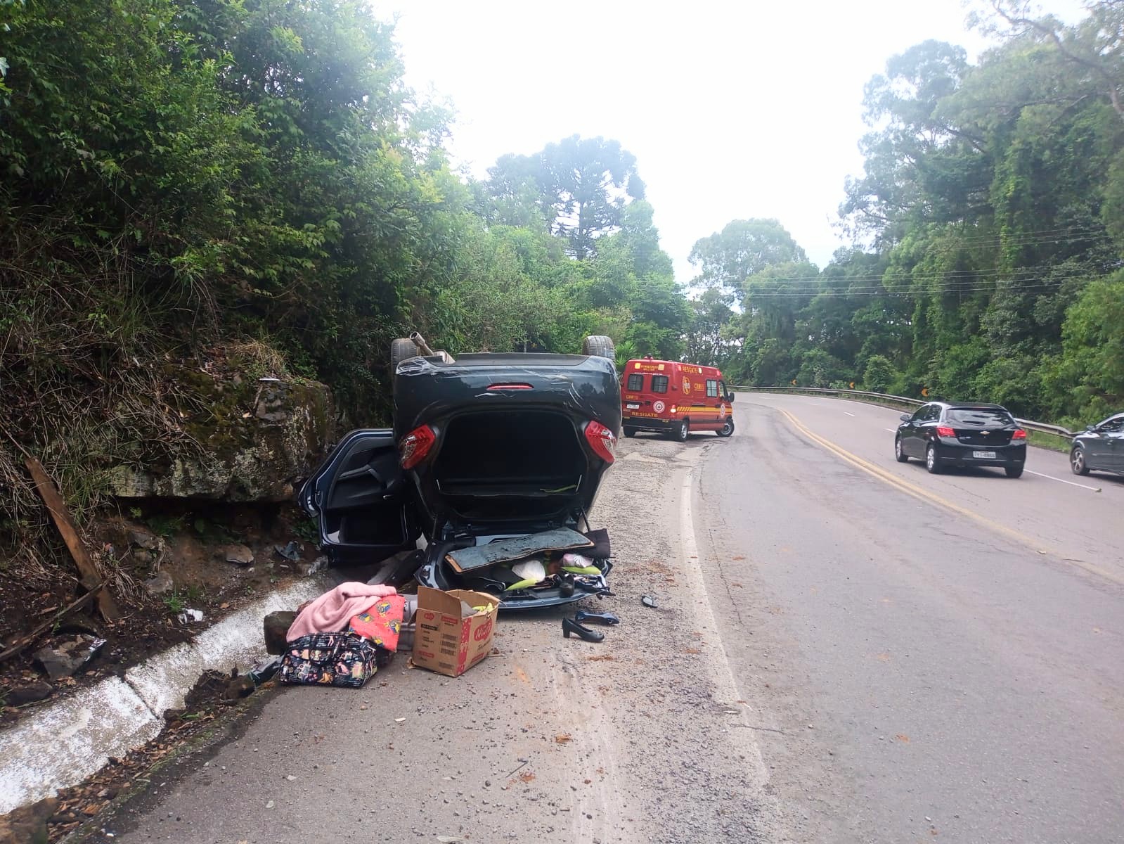 A mulher relatou à reportagem que viajava de São João da Urtiga com destino a Caxias do Sul quando se perdeu em uma curva no km 121 vindo a capotar o Peugeot 308 de cor escura.