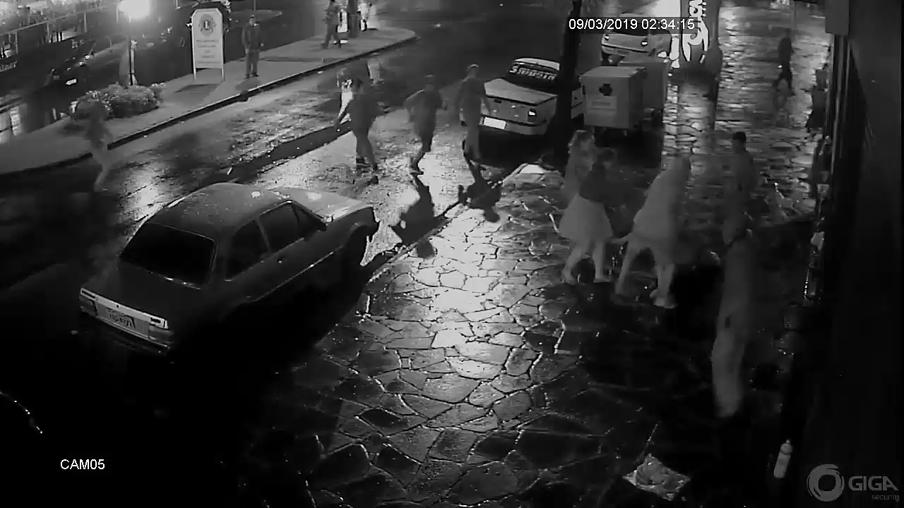 Toda a ação durou cerca de 5 minutos e começa quando alguns elementos chegam ao local e logo começam a jogar garrafas contra as vítimas. Duas mulheres estavam com a dupla que foi agredida com socos, chutes e garrafadas.