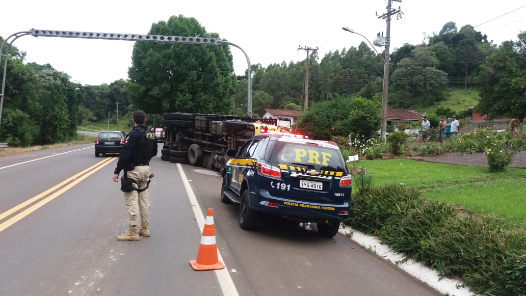 Na ocasião um caminhão M.Benz Atego 2426, com placas de Caxias do Sul, carregado de papel tombou sobre a via. De acordo com informações da Polícia Rodoviária Federal, o motorista de 43 anos; natural de São Francisco de Paula, foi socorrido pelo SAMU e encaminhado ao Hospital São João Bosco; em São Marcos, ele estava consciente e seu estado era estável.