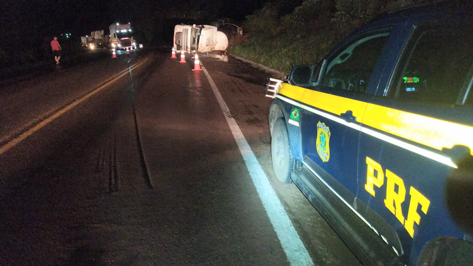Conforme nota da Polícia Rodoviária Federal, por volta das 19h30 desta sexta-feira (3) um caminhão tombou no km 54.3 da BR 116, em Vacaria.