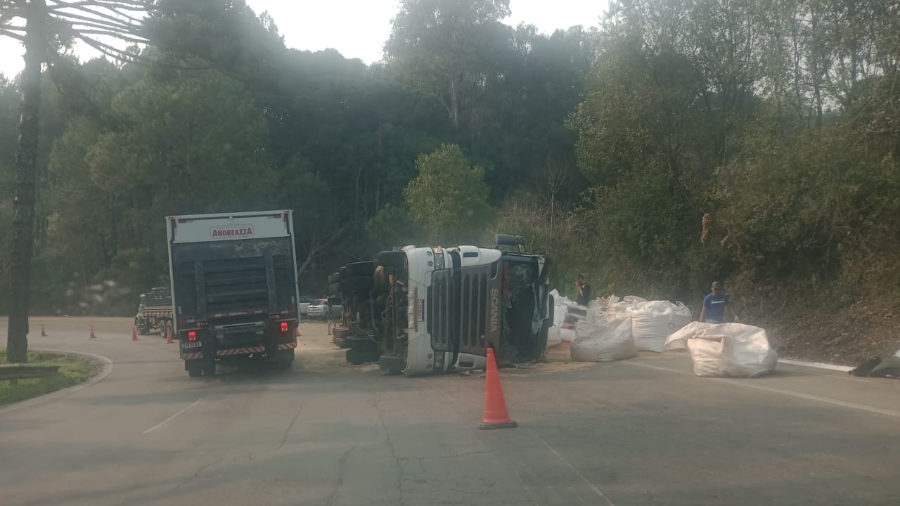 Caminhão tombado na BR-116 em São Marcos deverá ser removido esta manhã