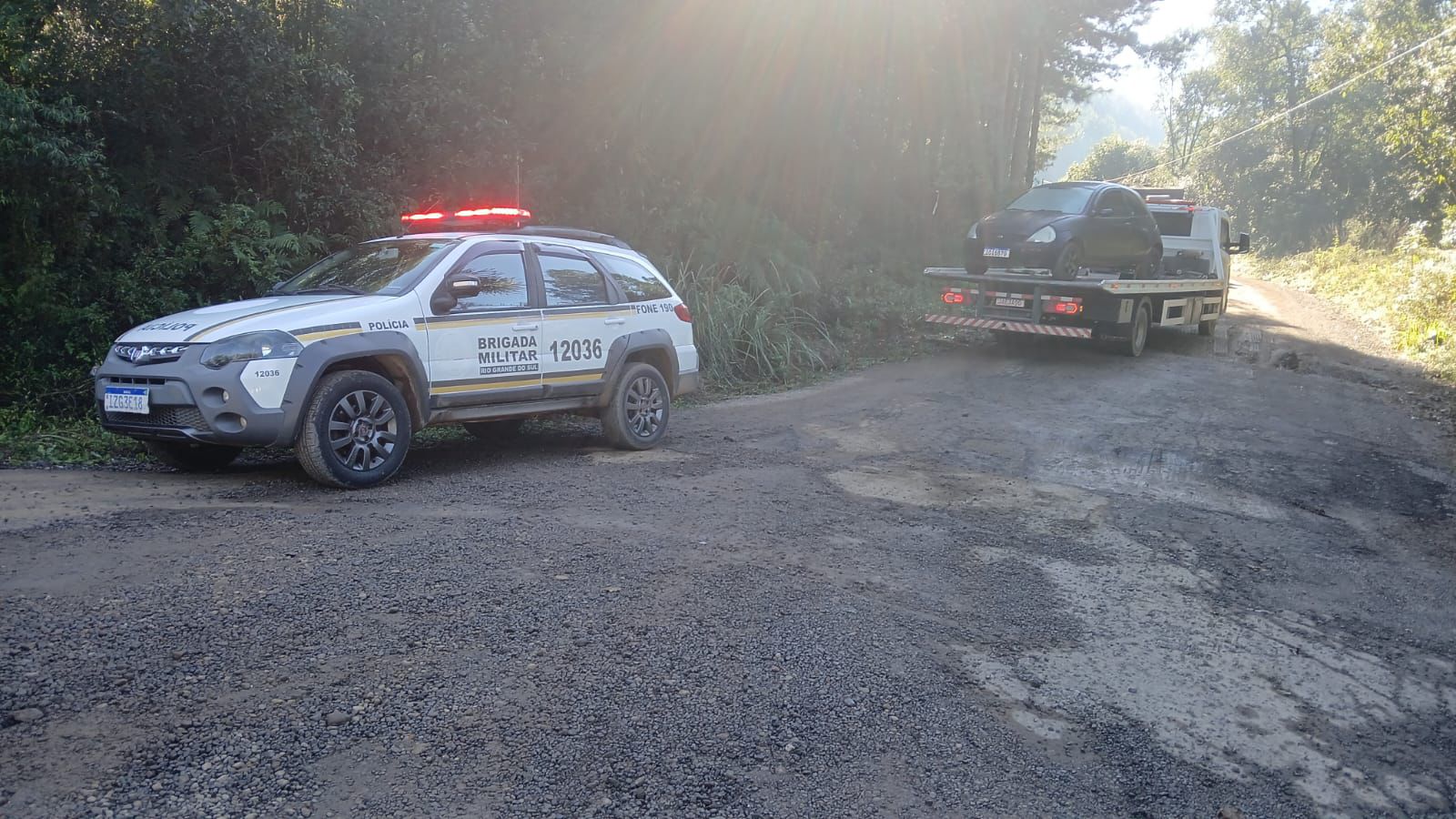 Dois indivíduos estariam empurrando o veículo em direção a Linha São Roque. Quando a polícia chegou somente o carro estava no local.
