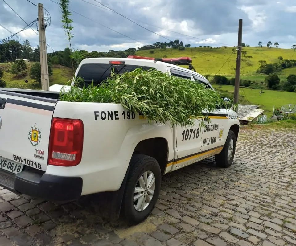 Os policiais chegaram até o local após denúncias de que havia uma plantação de maconha no pátio da residência. Uma mulher de 34 anos e um homem de 29 anos, que estavam na casa confirmaram que faziam o plantio da droga. Foram apreendidos 10 plantas de maconha e 69,25 gramas de sementes.