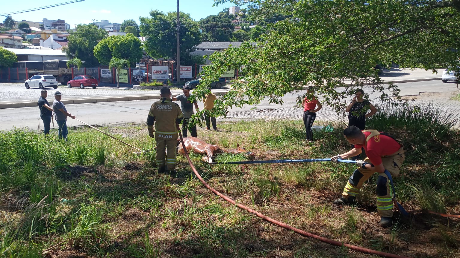 Animal teria sido atacado por volta das 6h próximo ao estábulo onde fica. Bombeiros, veterinários e voluntários atuaram por horas na tentativa de salvar o cavalo, que morreu por volta das 10h30