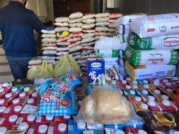 Na tarde desta quinta os donativos foram classificados, contabilizados e agora ficarão por um período de quarentena no Salão Paroquial, conforme orientações do COE.