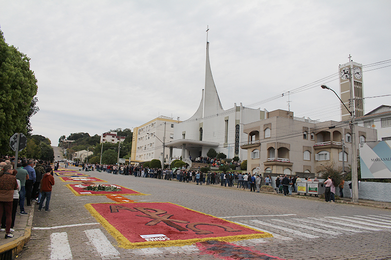 Seguindo o exemplo do ano passado, foram recolhidos donativos durante a missa para serem destinados a famílias carentes e entidades assistenciais do município. A celebração teve inicio às 15h e em seguida houve a tradicional procissão sob os tapetes.
