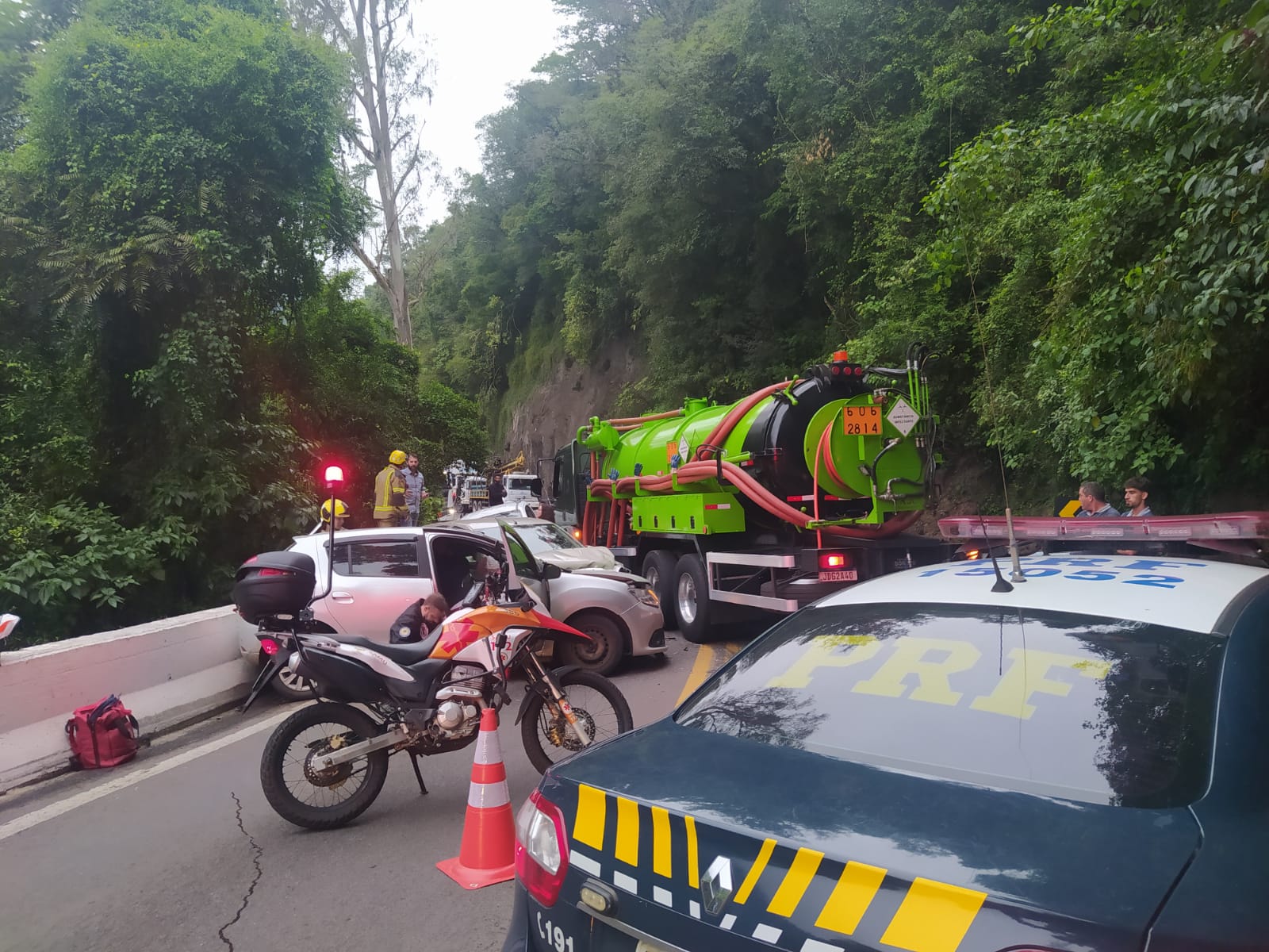 De acordo com a PRF, há uma pessoa ferida. A pista está totalmente bloqueada em ambos os sentidos.