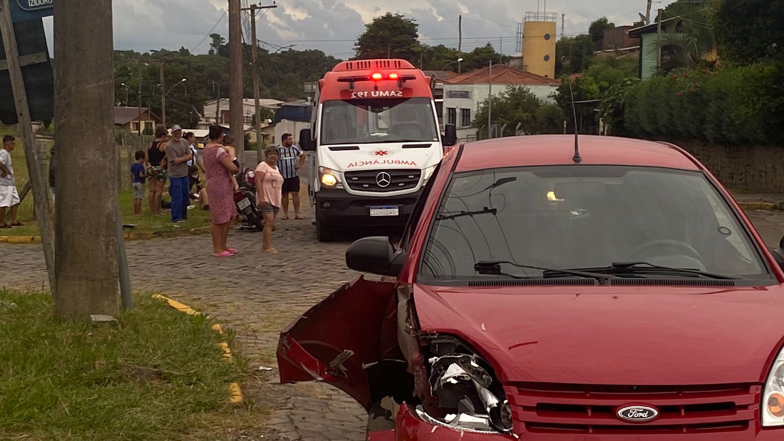 O SAMU foi acionado e prestou atendimento à jovem, imobilizando-a e encaminhando ao Hospital São João Bosco. O impacto da colisão deixou a motocicleta e o carro danificados. Os ocupantes do Ford Ka saíram ilesos.