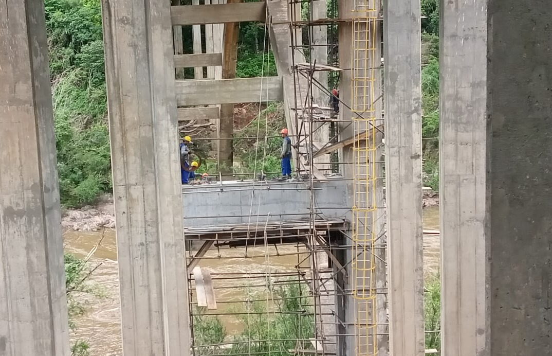 Com pilar quase todo concretado, restabelecimento do tráfego pode ser antecipado sobre a Ponte do Rio das Antas
