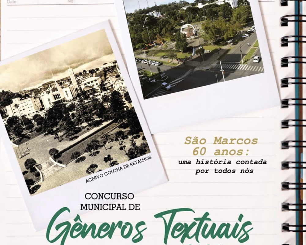 As inscrições para o Concurso de Gêneros Textuais seguem até o mês de julho em sete categorias O tema desta edição, que desafia a criatividade da comunidade geral e escolar, é “São Marcos 60 anos: uma história contata por todos nós”, para evidenciar inclusive as seis décadas de emancipação política do município.