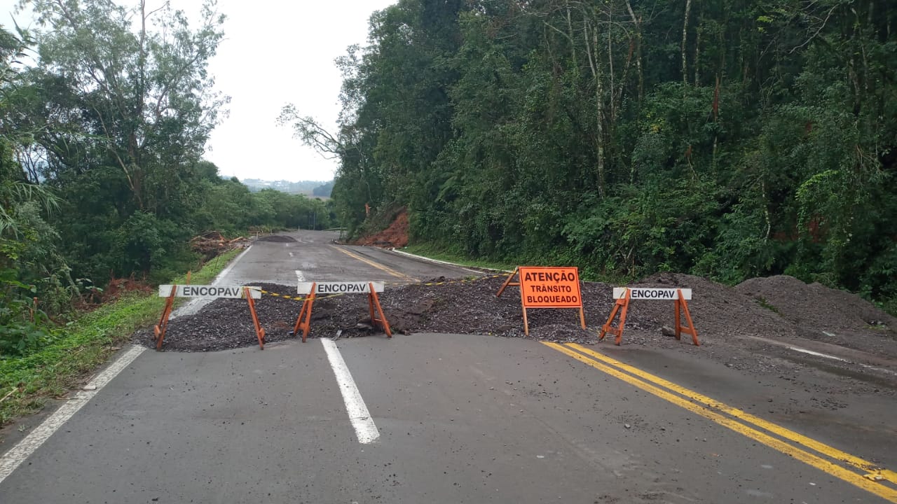 - Do km 194 ao km 201 da BR-470, em Bento Gonçalves, há bloqueio total por desmoronamentos de pista.