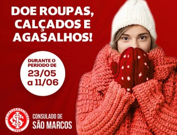 Com o lema: “Nesse inverno, a melhor jogada é aquecer quem precisa”, o consulado do Sport Club Internacional em São Marcos, promove a primeira edição da Campanha do Agasalho.