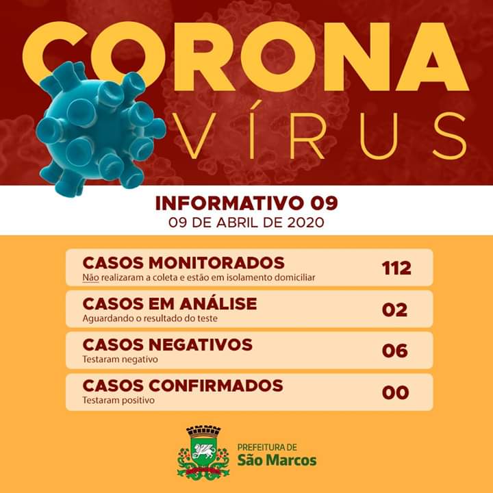 112 casos seguem em monitoramento no município Dos pacientes em isolamento, 39 apresentam sintomas gripais e 73 cumprem medida por serem contactantes/residirem no mesmo domicílio. São Marcos aguarda ainda os resultados de outros dois testes. As informações são do COE.