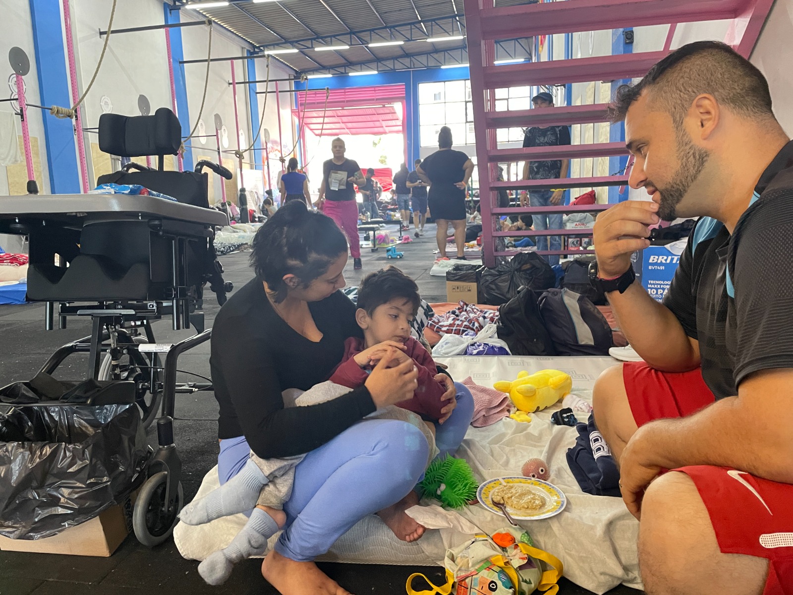No bairro Passo da Areia, em Porto alegre, funciona um dos pontos criados específicos para crianças com autismo. A South Training Cross fit, localizado na Rua Jari, cedeu o espaço onde estão cerca de 30 pessoas que tiveram de abandonar suas casas. Ali elas recebem acompanhamento de pediatras, terapeutas, fono e médicos clínicos geral. São trezentas pessoas na lista de atendimento que atuam de forma intercalada ajudando como podem. A terapeuta e especialista em análise do comportamento ABA, Cristine Castro, é uma das voluntárias em ação.