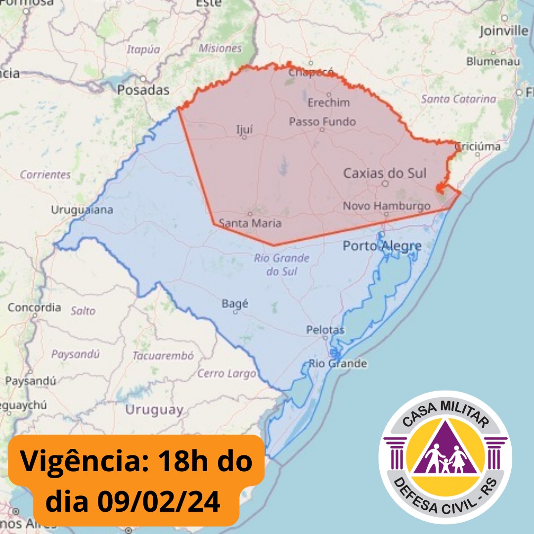 Alerta vale até às 18 horas na área em vermelho no mapa