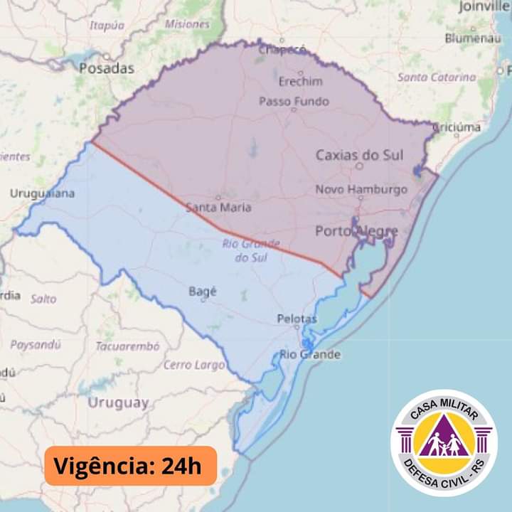 O alerta é válido por 24 horas. Em caso de emergência ligue 190/193.