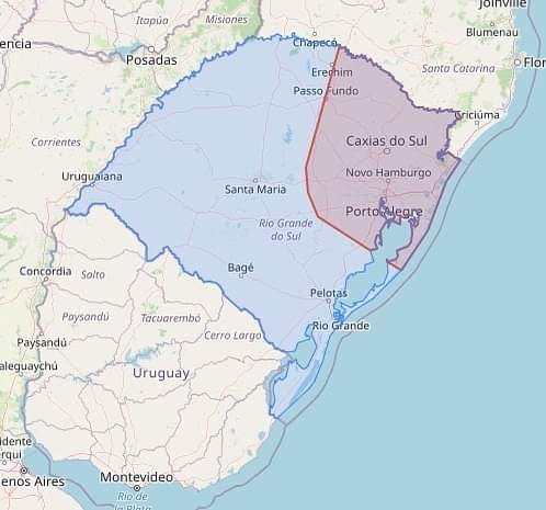 Por volta das 16h desta sexta-feira (2) a Defesa Civil do rio Grande do Sul emitiu alerta de chuva forte acompanhada de descargas elétricas, ventos de até 80 km/h e eventual queda de granizo na área demarcada em vermelho no mapa.