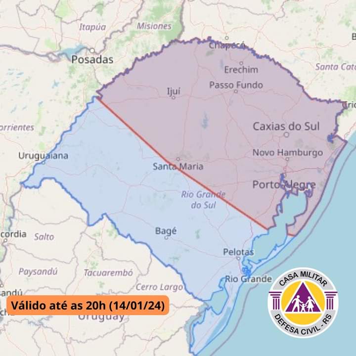 O aviso permanecerá válido até as 20h na área em vermelho no mapa A Defesa Civil emitiu um alerta por volta das 15h deste domingo, destacando a iminência de chuvas intensas, ventos fortes, descargas elétricas e possível queda de granizo. O aviso permanecerá válido até as 20h, exigindo atenção redobrada da comunidade.