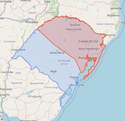 Nesta quarta-feira(30), a Defesa Civil emitiu um alerta para chuvas intensas, rajadas de vento de até 70Km/h e possível queda de granizo nas próximas 24h na área em vermelho no mapa.