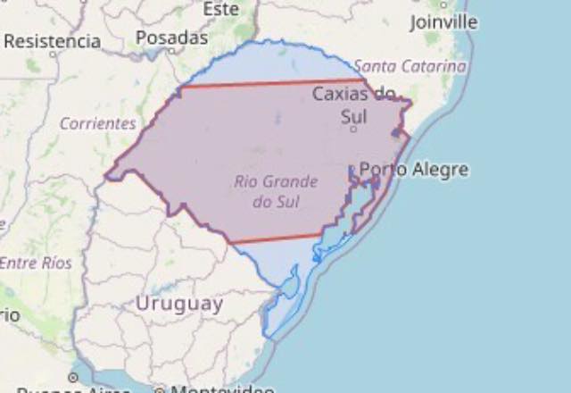 No fim da tarde desta sexta-feira (2) a Defesa Civil do Estado emitiu um alerta para possibilidade de queda de granizo, chuvas intensas e rajadas de vento nas próximas 24h na área delimitada em vermelho no mapa.