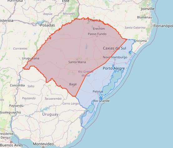 O alerta é válido para as próximas 6 horas para a área em vermelho no mapa Na tarde desta quinta-feira (30) a Defesa Civil do Rio Grande do Sul emitiu um alerta para possibilidade de chuvas fortes, acompanhada de descargas elétricas, eventual queda de granizo e ventos de 70km/h.