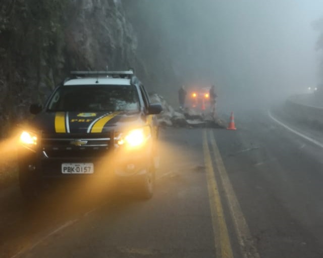 Neste momento o trânsito flui em meia pista sob orientação de equipe da PRF, devido a deslizamento de pedras entre São Marcos e Caxias do Sul.