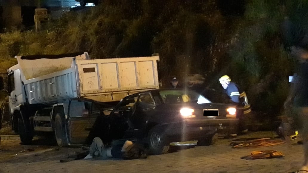 Conforme o registro do resgate, um chevette que seguia no sentido bairro – centro acabou colidindo na traseira de um caminhão caçamba que estava estacionado às margens da via.