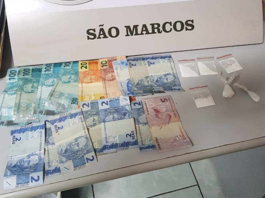 Após revista foi encontrado com o condutor 6,05g de cocaína e R$ 453,00 e com o caroneiro, o homem de 20 anos, 0,47g da mesma droga. Foi efetuada a prisão, e os dois foram conduzidos à DPPA de Caxias do Sul.