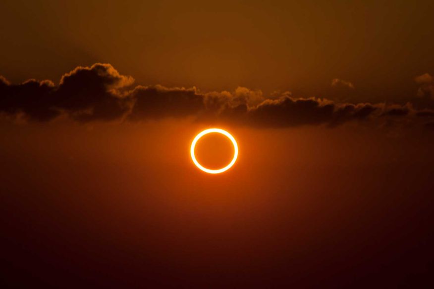 Também conhecido como “anel de fogo”, o fenômeno raro acontece quando a Terra, o Sol e a Lua se alinham, da mesma forma que no eclipse total. Mas em algumas ocasiões, o satélite natural pode estar mais distante para cobrir completamente o disco solar.