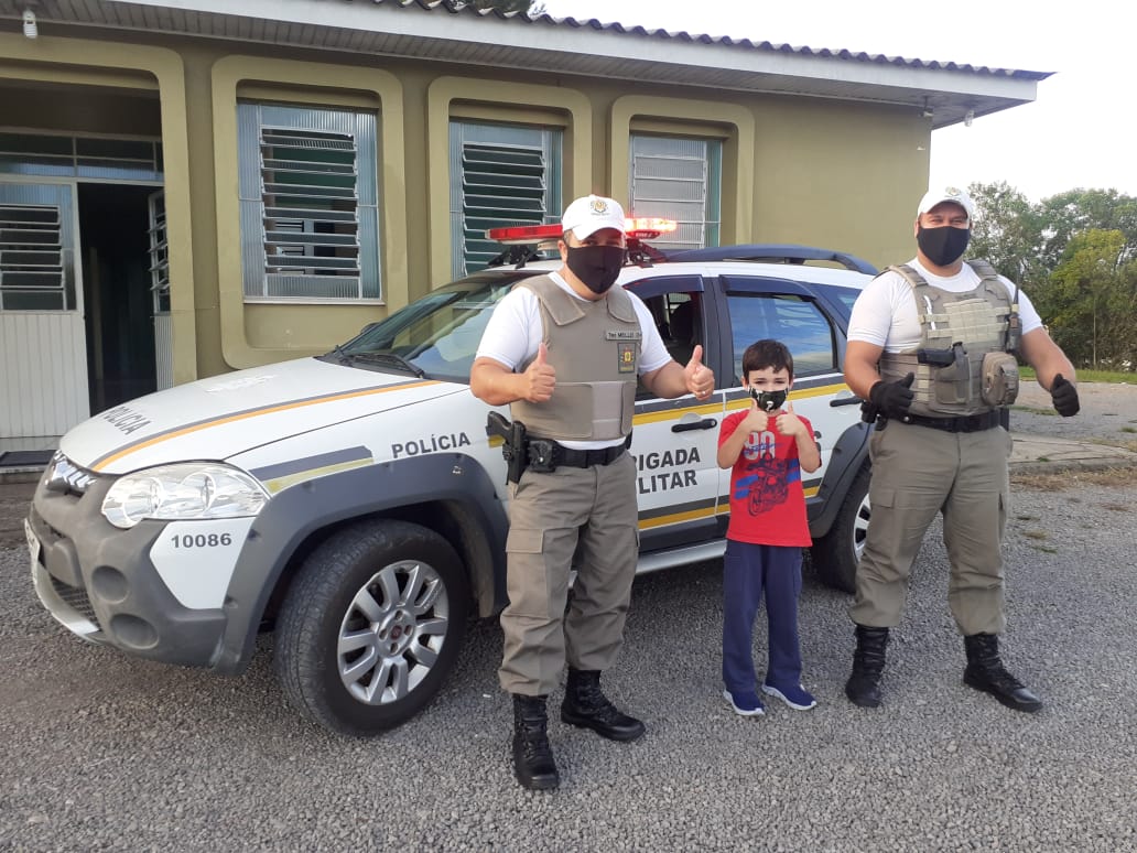 Na tarde desta segunda feira (22), a Brigada Militar de São Marcos foi surpreendida pela visita do pequeno João Pedro Rodrigues da Silva; 6 anos e seu pai, o Sr. Clodoaldo da Silva que relatou aos policiais que o menino tinha medo dos brigadianos.