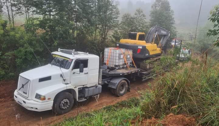 Caminhão e escavadeira avaliados em cerca de R$ 750 mil possuem rastreador e foram recuperados horas depois